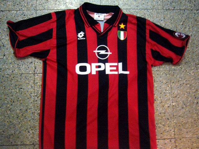 ac-milan-home-football-shirt-1996-1997-s_4051_1Soy un enamorado de las equipaciones del AC Milán. No hay camiseta de ningún año que no me guste en diseño. Pero he elegido ésta porque fue la primera en la que me fijé cuando era un crío. La vistieron entre otros Savicevic, Ganz, Boban, Albertini, Desailly y por supuesto los grandísimos George Weah y Paolo Maldini. Era el Milán post Capello/Sacchi que arrasó Europa desde 1988 y todavía tenía  fútbol en sus botas (pero ni por asomo el de antaño). La retirada de Franco Baresi, que vistió esa camiseta, marcó el final de uno de los mejores equipos de la historia del fútbol.