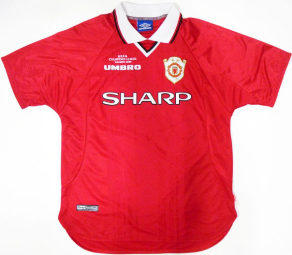 la foto (2)Si te gusta el Manchester United no puede fallar esta camiseta. Con ella los chicos de Ferguson levantaron una casi imposible Champions League en el año 1999. En aquel partido, ganado por el Bayern de Munich durante 91 minutos, se produjo el milagro de los milagros y dos goles en el descuento dieron el Título a los Red Devils. Fue espectacular.