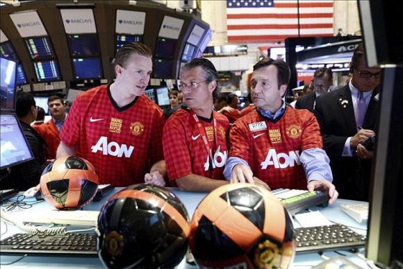 Otro caso algo más especial ha sido el del Manchester United, otro de los pocos clubes con ganancias en bolsa. Como bien he explicado al principio del artículo, el Manchester United empezó a cotizar en 1991, pero años más tarde, en mayo 2005, Malcolm Glazer (propietario de los Tampa Bay Buccaneers) se hizo con el control del equipo de fútbol, lo que le permitió excluir de bolsa sus acciones. Sin embargo, en el verano de 2012 y por necesidad urgente de liquidez, se decidió que el equipo volviese a cotizar, pero esta vez en el NYSE (la bolsa estadounidense).
